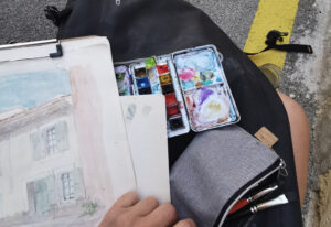 Ma réalisation est à l’aquarelle, crayon, encre sur papier de qualité.
